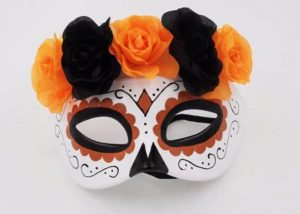 Black, Orange & White Day Of The Dead Eye Mask Mexico Carnival