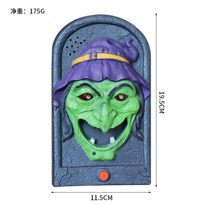 Add a spooky touch to your Halloween decor with this battery-powered haunted doorbell. Featuring eerie sounds and light-up effects, it’s perfect for creating a chilling atmosphere at your haunted house or Halloween party. Easy to set up and ready to ship, this decoration is a must-have for adding frightful fun to your festivities!