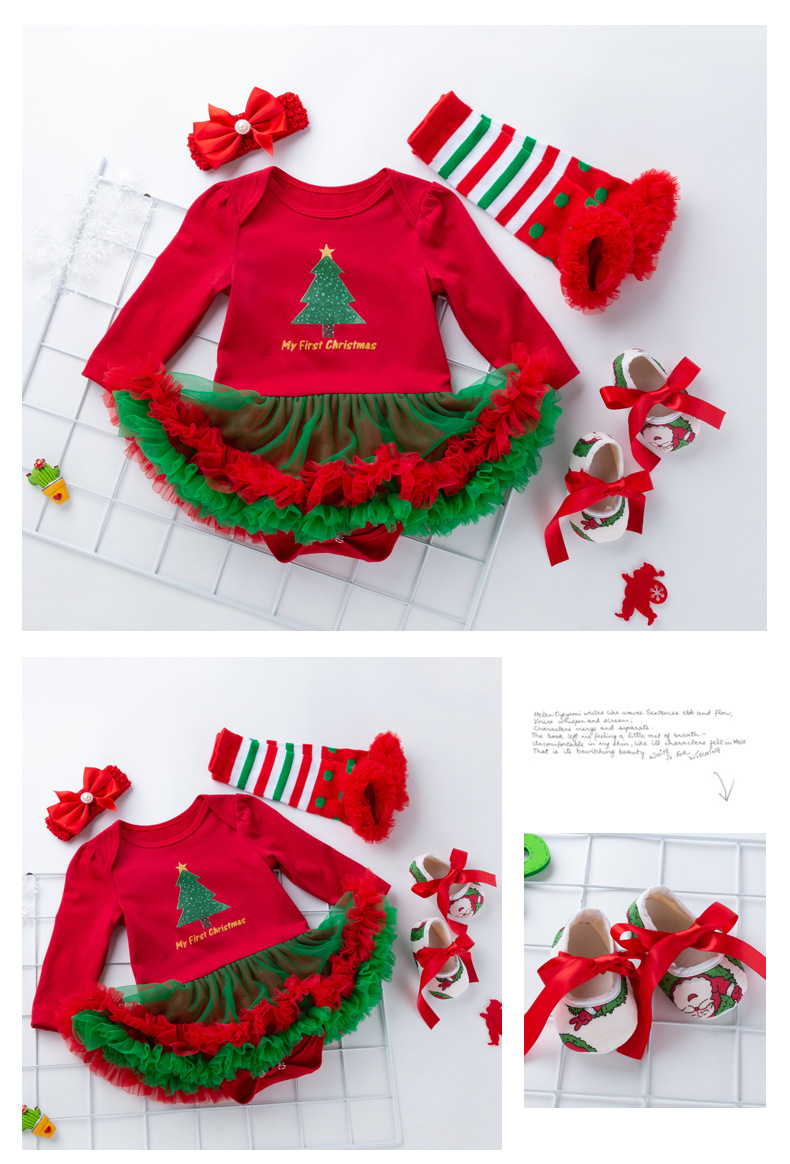 Your baby girl’s first Christmas in style with this adorable 1st Christmas Outfit Set! This set includes a charming romper with festive details and a sweet tutu dress, perfect for making her special day even more memorable. The princess-inspired design features a delicate tutu skirt and soft fabric, ensuring both comfort and cuteness. Ideal for holiday photos, family gatherings, or her first Christmas party, this outfit is perfect for making your little one’s first Christmas unforgettable. The matching accessories complete the look for a picture-perfect holiday celebration!